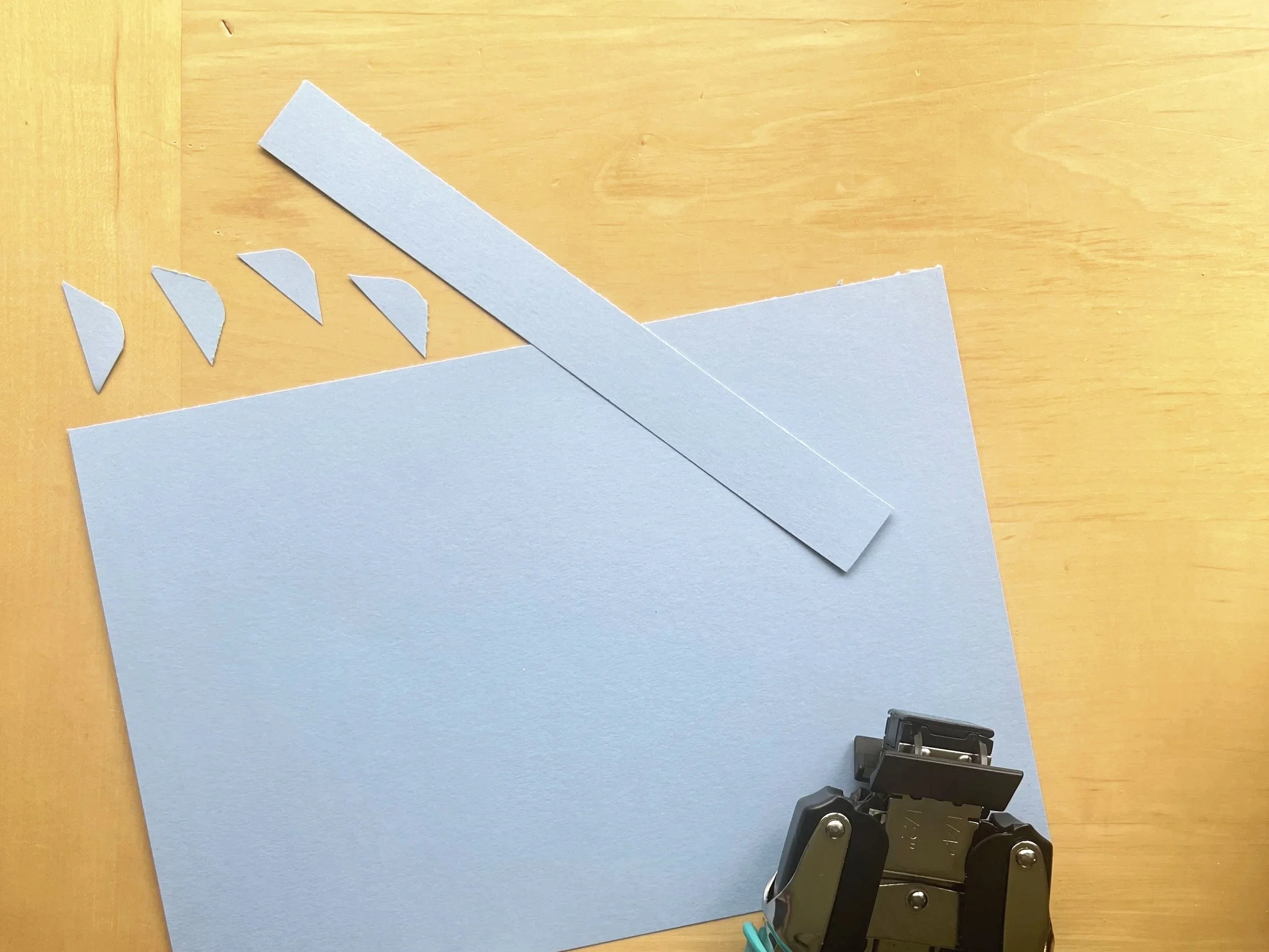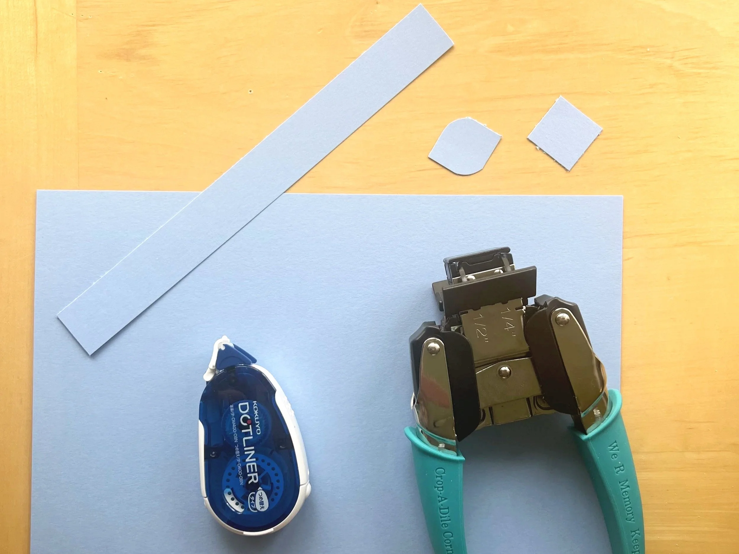 Get your photo corners ready. You can use pre-made photo corners like these. Or you can create your own photo corners to hold the artwork in place on the card. To make our own, we cut two one-inch squares from the excess strip of paper, rounded two opposite corners of each of the squares with the corner punch, then cut each square in half diagonally to form two triangular corners.