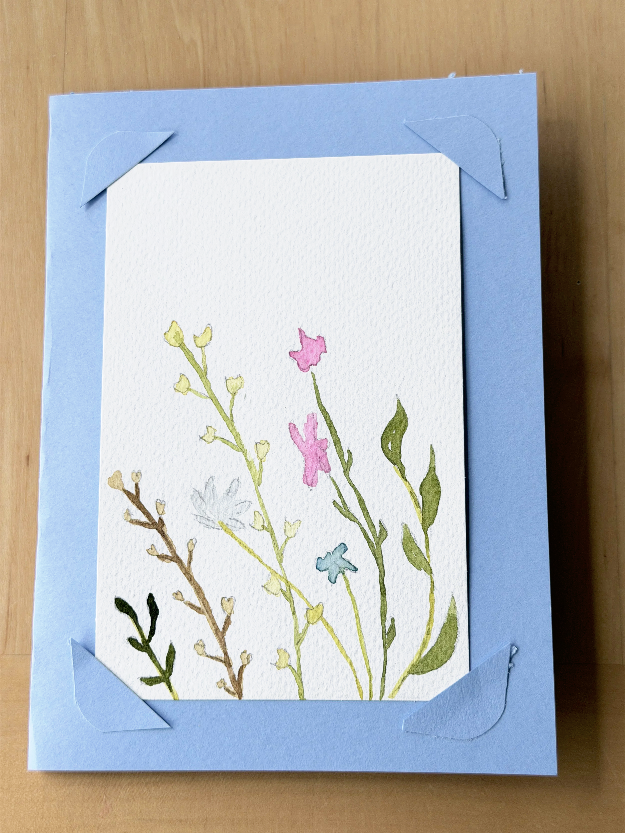 The idea behind this card is that you can use it to gift a small piece of artwork to a loved one. We attach the art in such a way that it can later be removed, if desired, and kept without the card.